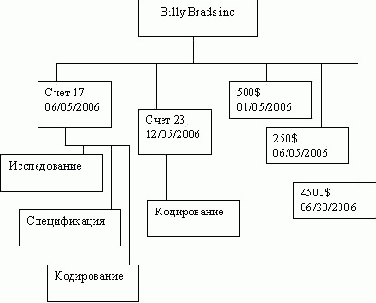 На рис. 1.2 изображена простая иерархическая база данных, в которой фиксируется деятельность независимого подрядчика. Корень дерева представляет собой запись о клиенте. Ее потомками являются две записи о счет-фактурах и три записи об оплатах счетов. Структура счета номер 17 уточняется в трех дочерних записях, у счета номер 23 одна такая запись.