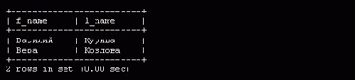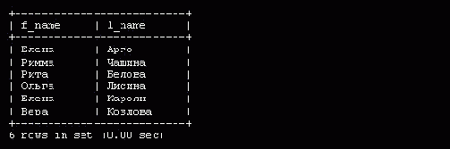 select f_name, l_name from employee_data where f_name LIKE "В%";